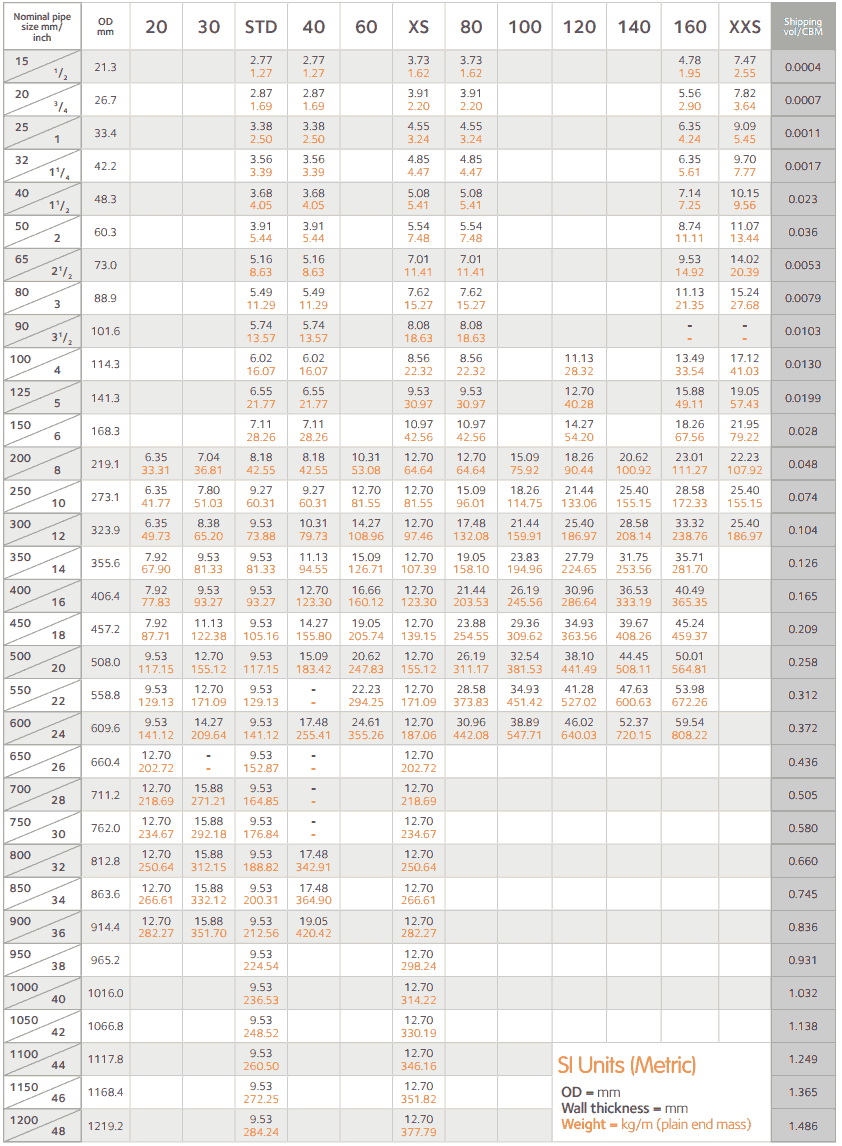Bảng trọng lượng /Độ dày ống thép đúc A53